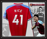 Umbro on-field style jersey. Everything is sewn on, size L. Hand-signed by Declan Rice (West Ham United FC).