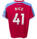 Umbro on-field style jersey. Everything is sewn on, size L. Hand-signed by Declan Rice (West Ham United FC).